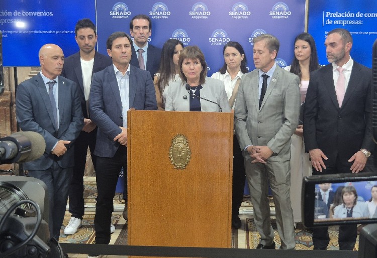 La jefa del bloque de La Libertad Avanza en el Senado, Patricia Bullrich, encabezó una conferencia de prensa para presentar el texto definitivo del proyecto de modernización laboral que se votará este miércoles