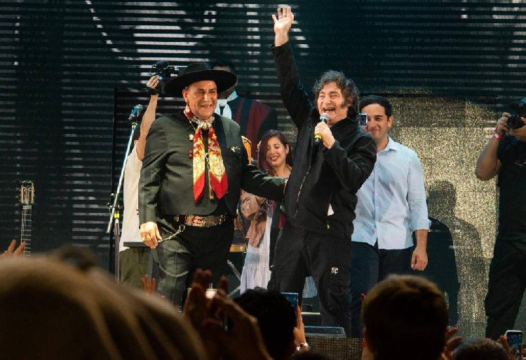 Ante la invitación de Palavecino para cantarlo a dúo, el Presidente intentó excusarse inicialmente alegando que "no le da el piné" y que él es un "amateur" al lado del folclorista. Sin embargo, tras la insistencia del músico —quien le recordó su pasado rockero y cantando temas de Leonardo Favio—, Milei subió al escenario.