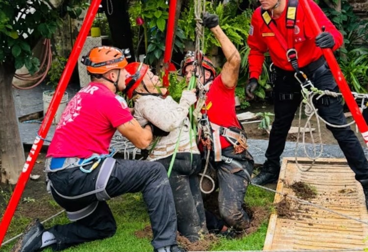 Una mujer de 82 años fue rescatada por personal del DUAR tras caer a un pozo socavado de 9 metros en el frente de su casa, en barrio Poeta Lugones, al norte de la ciudad de Córdoba.