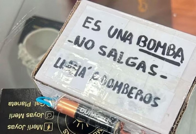 Antes de dejar la caja con la amenaza, el delincuente -que se hizo pasar por cliente- robó unos aritos que le pidió a una de las empleadas y, al emprender la huida, dejó en el mostrador la caja con contenido explosivo, que posteriormente explotó y provocó la rotura de vidrios.